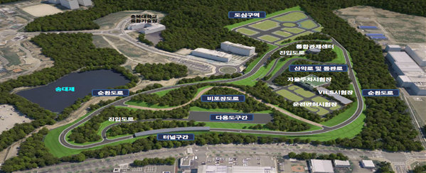 * (시험구역) 도심, 야외, 순환, 응용, 주차 등 5개 구역 / (시험로) 자전거‧보행자도로, 버스정류장, U턴구간, 자동차 전용